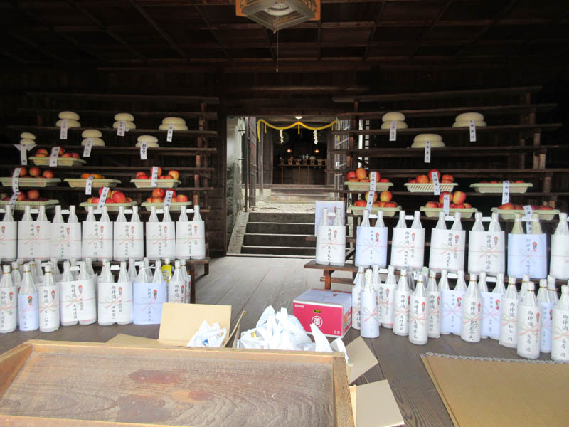 お供えの受け付けしたものは、順番に拝殿に並べます