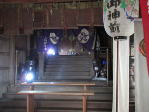 沖島弁財天の拝殿から本殿を撮りました。電気が来てないのでLEDランプが活躍です