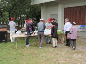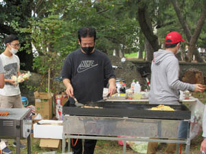 もう1品は焼きそばです。手慣れたものです。3品ですが、地元「愛宕会」「津島会」のボランティア団体が作ります |