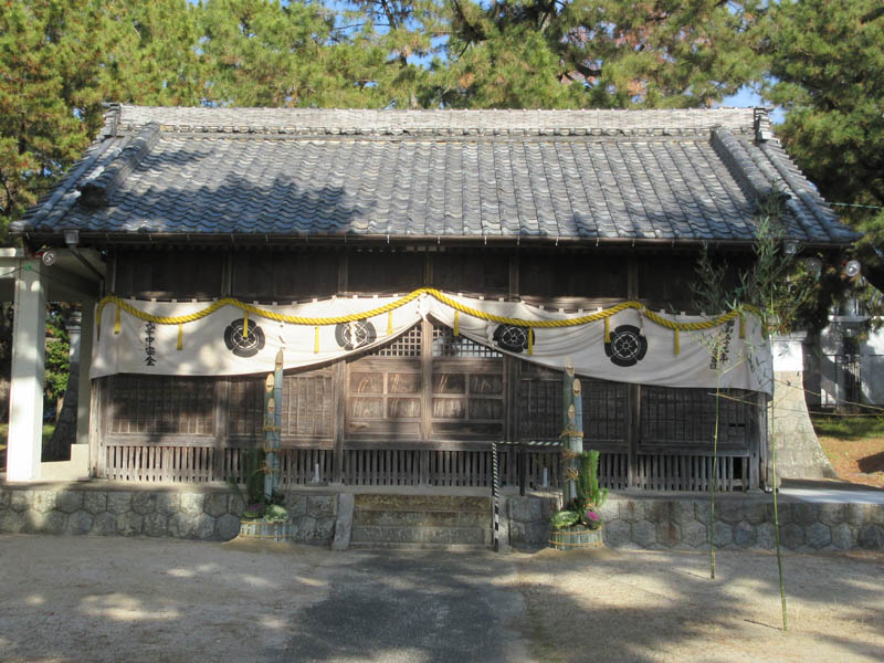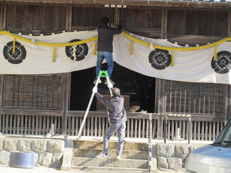 年末30日、小見行組役員が津島社に集まり新年を迎える準備をします。先ずは拝殿の幕張からです