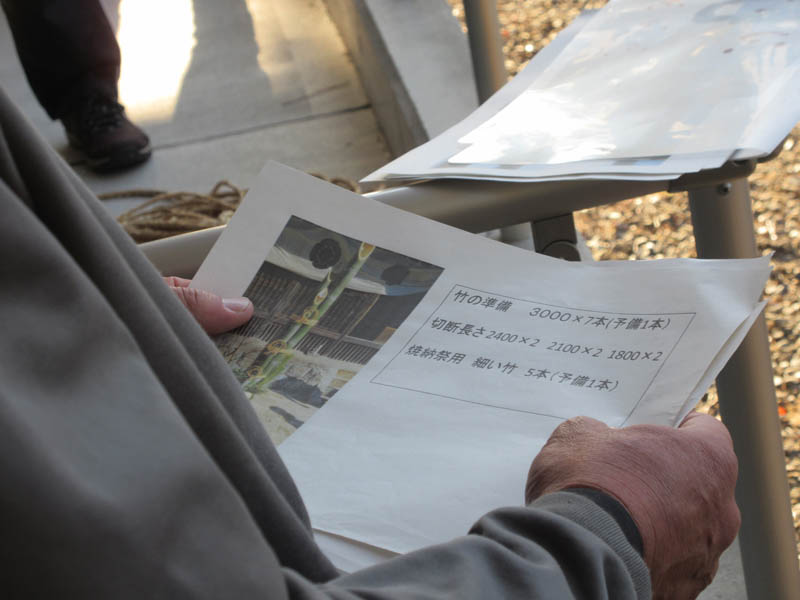 役員先輩が書いた門松などの作り方のトラの巻を見ながら進めます