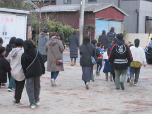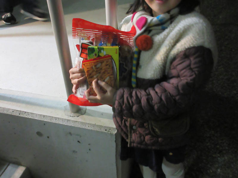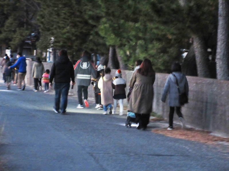 日が落ちるのが早く、17時には薄暗くなり、小見行組公民館に中柴と本郷の子供会が集合します |