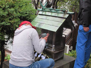 観音堂から山の上の愛宕社が見られることから愛宕社遥拝所の祠があり、傷んだところを修繕します