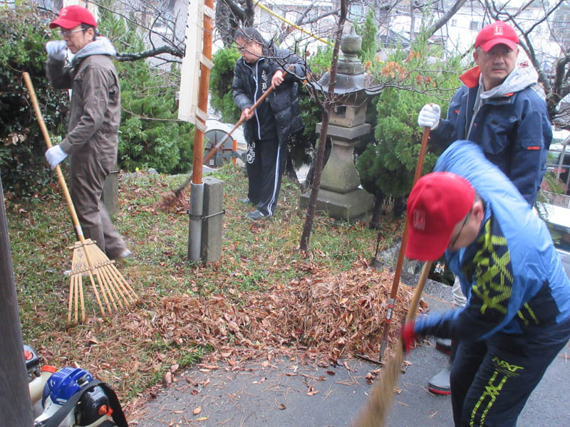 2024年の新年を迎えるために、30日の組役員さんの評議員により津島社の清掃、門松作りに始まります。夕方には子供会による防火夜警があり、大晦日31日には愛宕会による塚越観音堂の清掃をして新年を待ちます