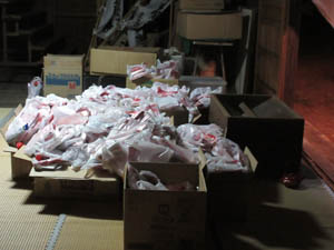参拝者には厄払いの記念品を渡します。沢山用意し、氏子の参拝を待ちます。 |