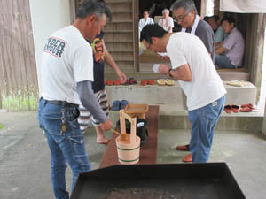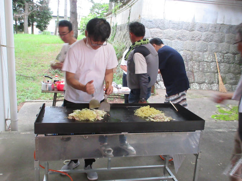 今年は、付録イベントとして焼きそばサービスを行いました。猛暑の中、汗びっしょりで火に向かいます。氏子の皆に祇園祭の関心が高まりますように!!