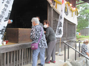式典が終わる頃から、組内氏子が参拝に訪れ、家内安全、疫病鎮静等々を祈願します