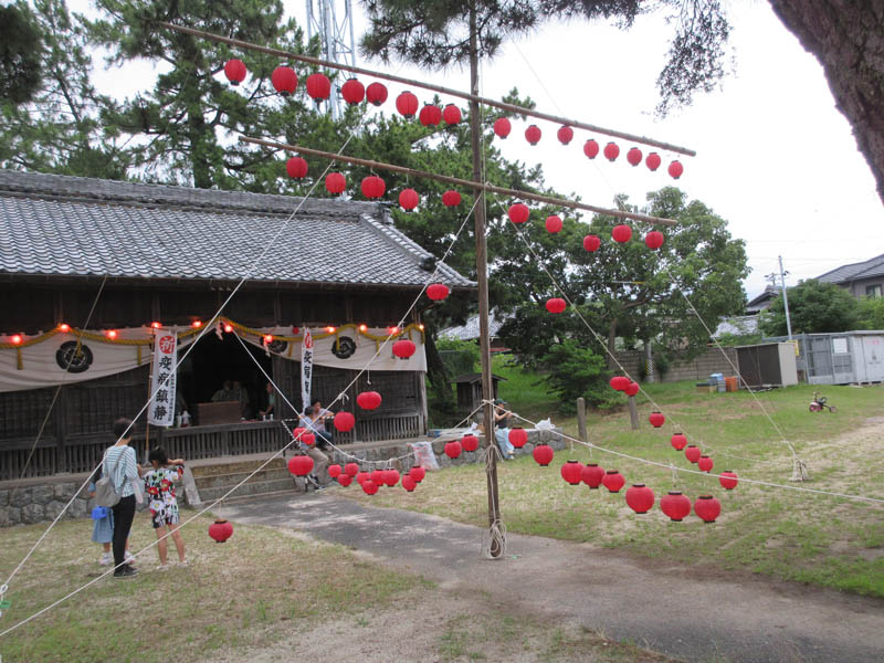 もうすぐ、梅雨明けと思われ、暑い日が続いています。昨日の天気予報では、今日は雨の予定で、令和元年度のように雨天の場合は拝殿の中に天の字の提灯用の竿を立てる予定でいましたが、予報が外れて、夏空になりました。