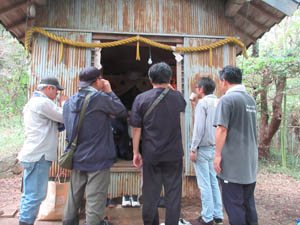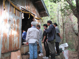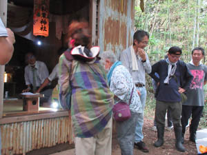 ![]() 準備をした役員も全員は祠内には入れず、外で祭礼参拝です |