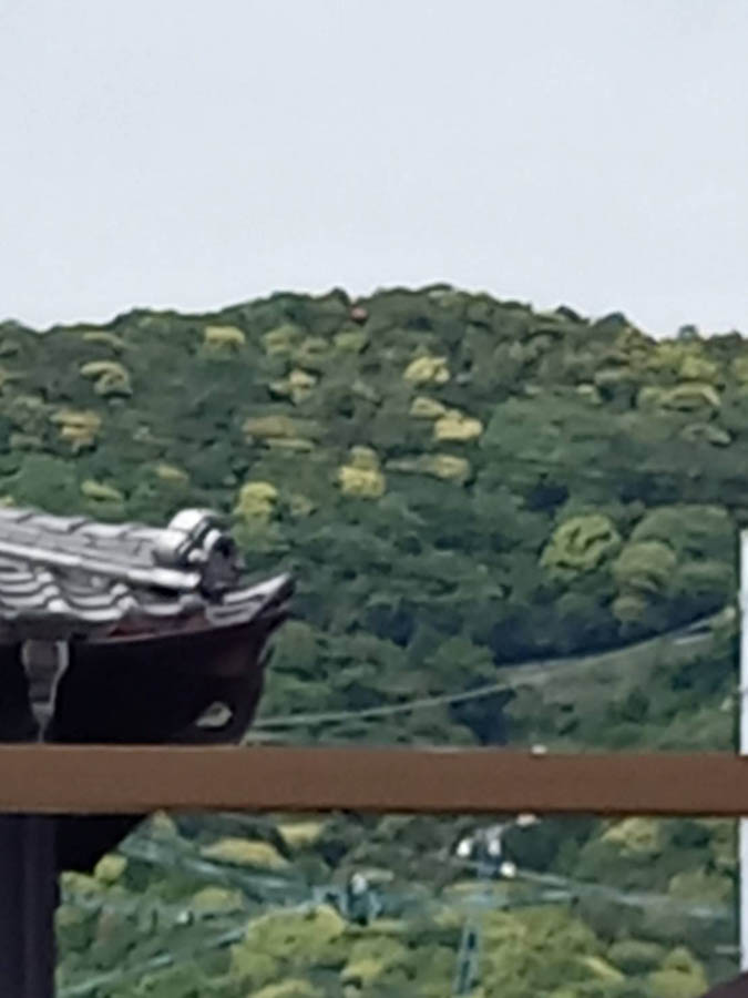 最近、愛宕社前に高い雑木が増えて、遥拝所から見えなく、また愛宕社からは三河湾も見えないくらい視界が遮られていたので、昨年5月には雑木伐採作業を行いました。結構大変でしたが、見通しが良くなり、おかげで遥拝所からも見られるようになりました。