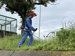 ごみ集積場周りの草が伸びて、刈払機の登場です