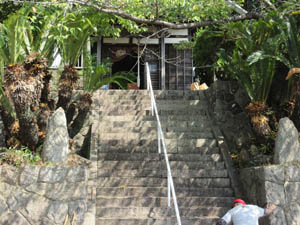 観音堂の階段の落ち葉が片付ききれいになりました。あとは観音堂の中とゴミ捨てです(筆者撮影)