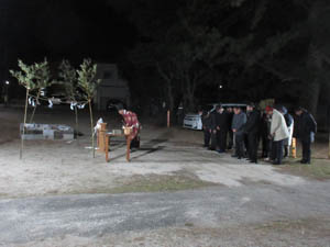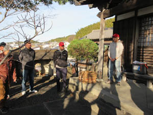 31日の朝は、愛宕会による塚越観音堂境内の清掃から始まります。岩間会長さんの挨拶がありスタートです