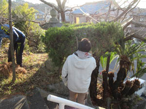 役員先輩の指導を聞いて門松に