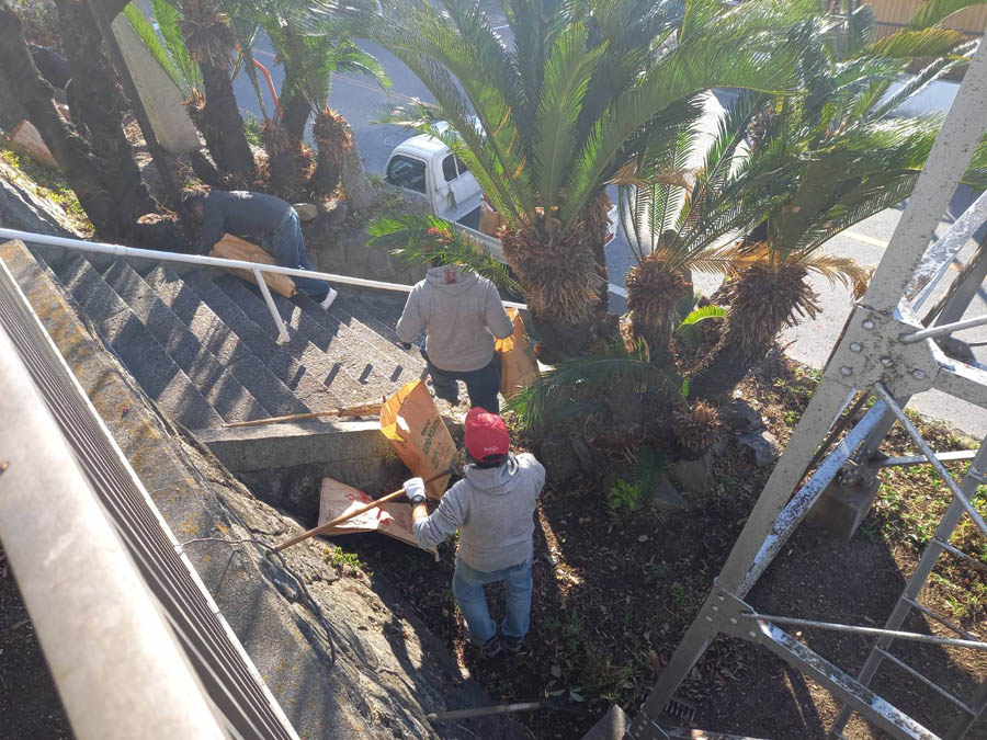 階段の落ち葉が一杯でしたが、きれいになります |