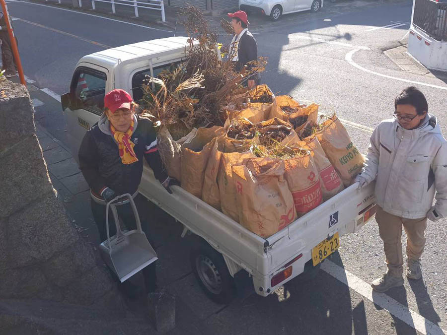 こんなに落ち葉等が集まりました。軽トラで処分場へ運び、年末の清掃が終わります