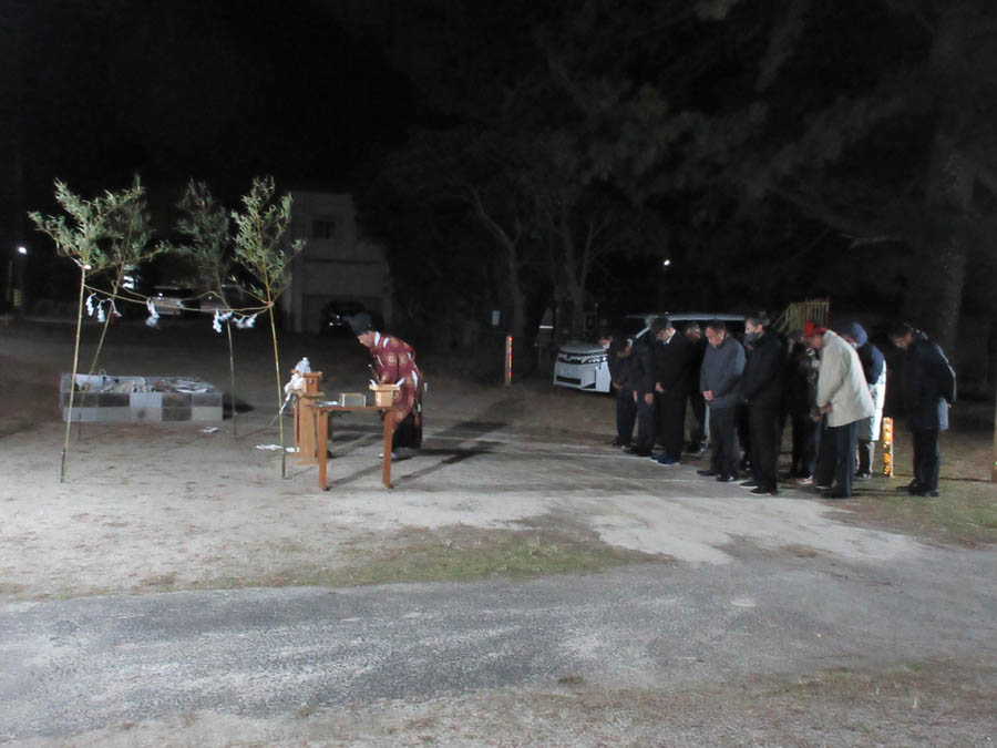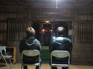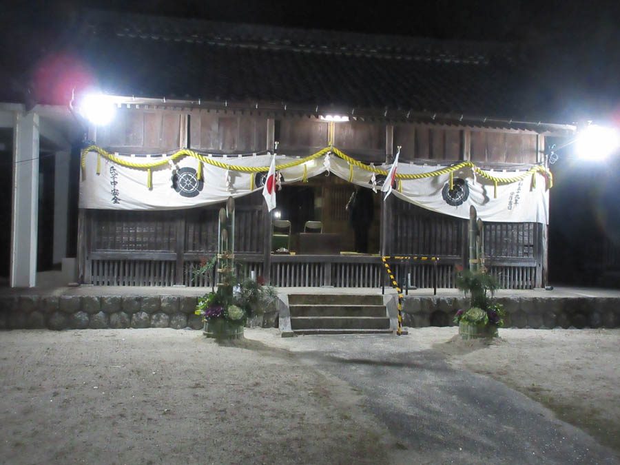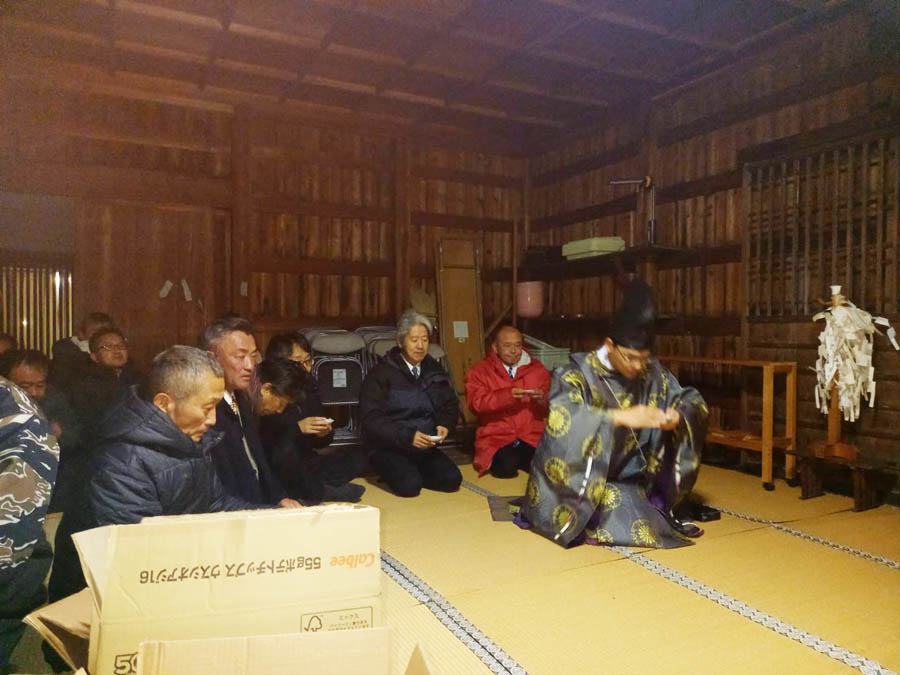 0時を過ぎ新年を迎え、寒く薄暗い拝殿ですが、新年元旦祭が執り行われ、小見行組内氏子の安泰が祈念されます