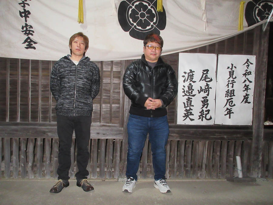 来る新年に厄年を迎える小見行組では中柴組の2人です。今年度も感染症対策や人手の関係もあり御神酒、甘酒等の振る舞いはなしです。