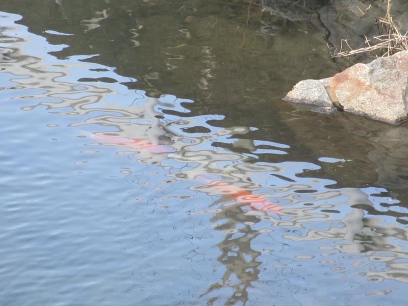 寺部の立岩の小野ヶ谷川で元気に泳いでいる鯉です。毎年見られます。今年も水がきれいで、よく見えました
