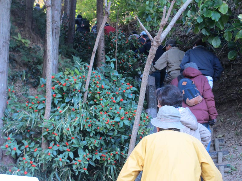 寺部城趾へ上がる山道の入り口です沢山の千両の赤い実が見事です。正月3日も済んでしまい、もったいない感じです