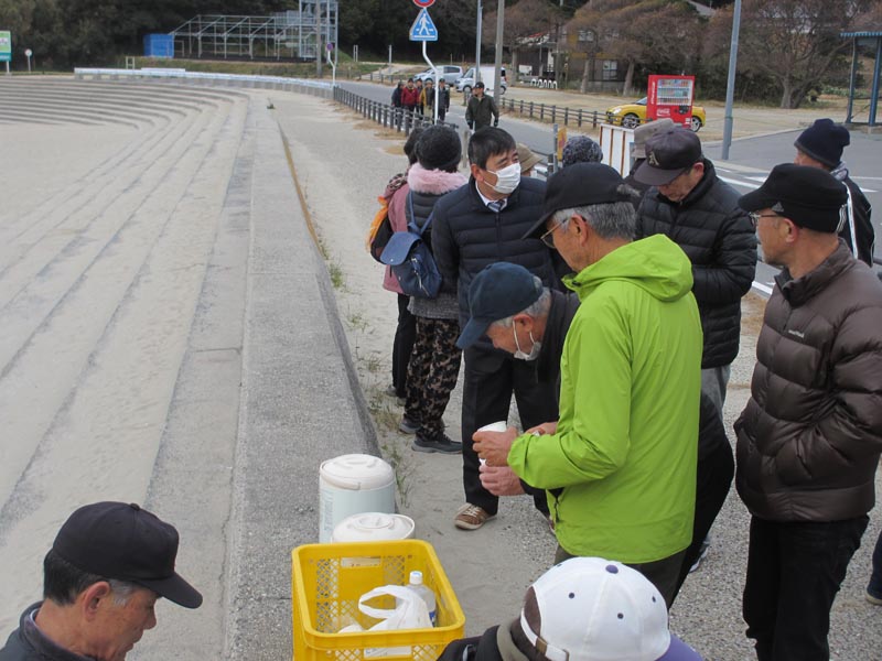 寺部海岸で休憩です。ポカリスエットもありましたが、今日は熱いお茶がいいです