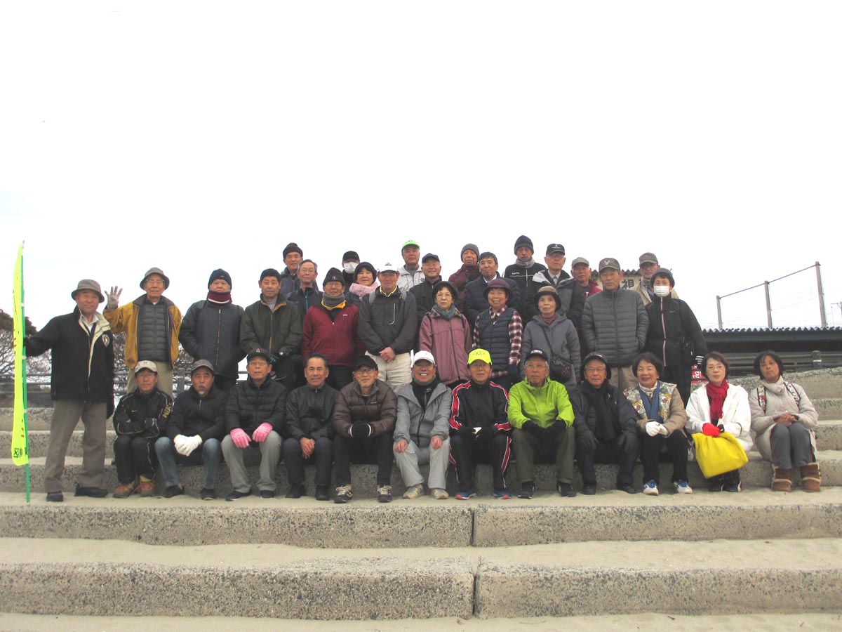 堤防で記念写真です。さー、これで出発東幡豆駅に向かいます。桑畑漁港と愛宕山三ヶ根山を眺めながら歩き、駅で解散ですお疲れ様でした |