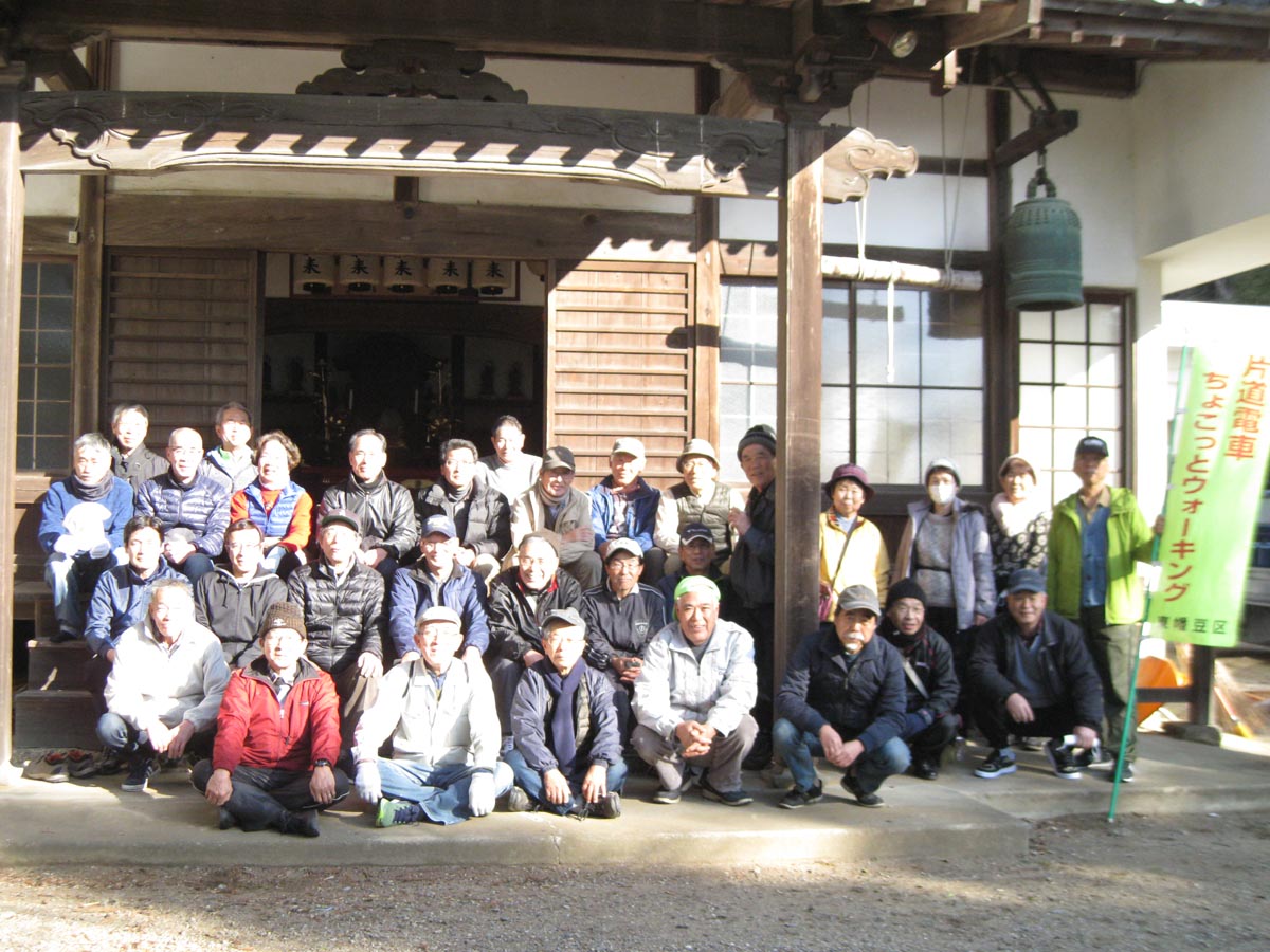 今年は、風もなく青空の下、あまり寒さを感じない絶好のウォーキング日和でした。 東幡豆駅から1区間電車に乗り「こどもの国」駅出発で、「初春の東幡豆歴探訪」のコースで、35人がいい汗をかきました。