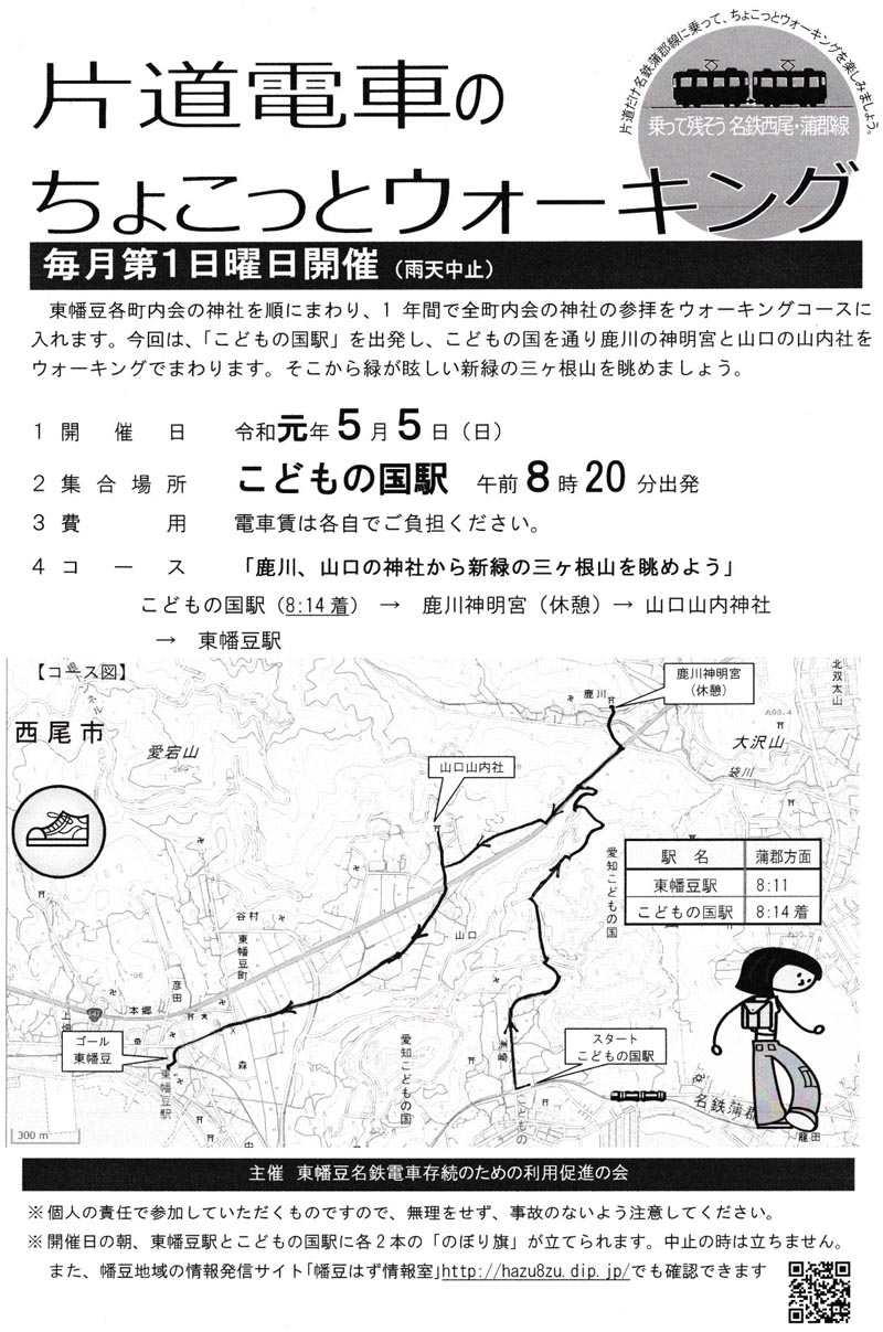 令和元年5月5日(日)の様子です。 令和になり初めてのウォーキングです。コースは昨年からスタートした「鹿川、山口の神社から新緑の三ヶ根を眺めよう」と題してです。