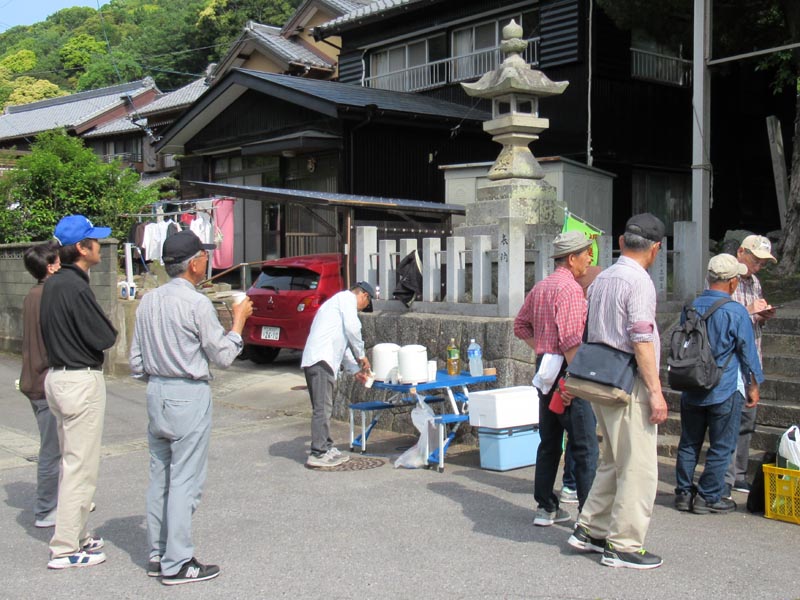 参拝の後、お茶を飲みながら、しばらく歓談です。お茶当番は彦田町内会です。休憩後、山口の山内社を参拝し、東幡豆駅へ向かい解散になりました