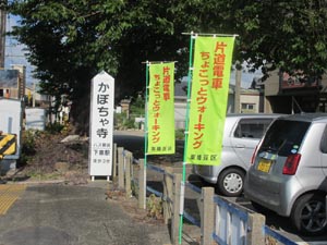 この幟は開催のお知らせです。天気があやしく、分からないときはインターネットで知らせるだけでなく、この幟が立っている時は開催されるのです