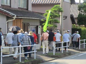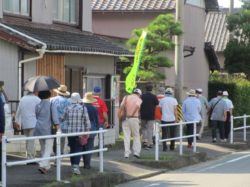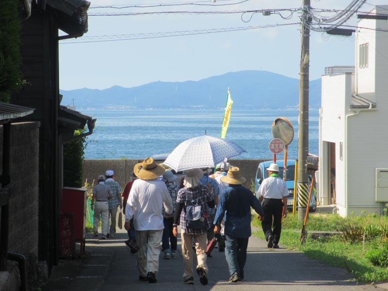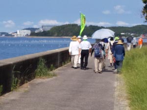 集合写真の後に、出発です。ここからは、海岸線が続きます。小見行組津島社森組八幡社を参拝し、東幡豆駅に向かいます。真夏の太陽の下、いい汗をかいてウォーキングを楽しみました |