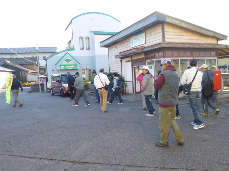 みんな、こどもの国駅と東幡豆駅から乗車して、西幡豆駅下車し25人が8時にスタートしました。