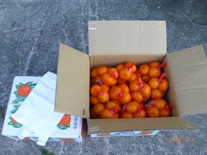 土産のみかんは、1袋ずつもらいます。ご馳走様です