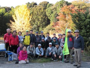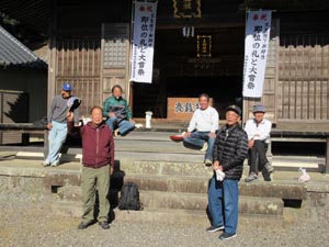 好例の集合写真。です。もみじ寺がバックです。この後は西幡豆駅の戻る楽々コーストと山越えして東幡豆駅で解散コースに分かれます。