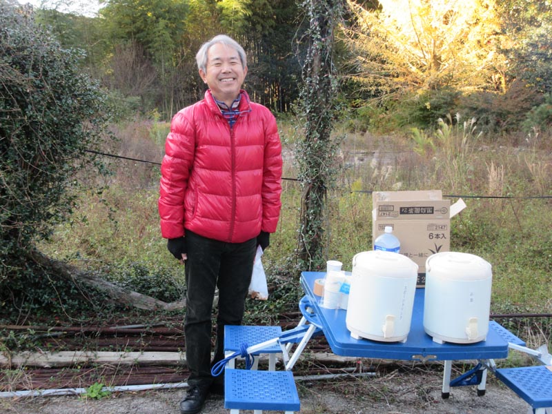 休憩です。熱いお茶が最高。冷えたスポーツドリンクも用意しましたが、熱いお茶のほうが人気でした
