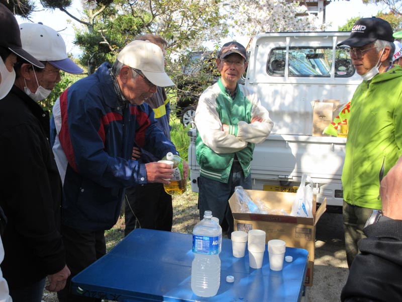 お茶の後は、花見をしながらの歓談です。マスクが邪魔です。新コロナも早い終息を願っています