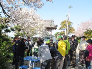 正法寺に着いて休憩です。当番の上畑町内会の役員さん、お世話様です