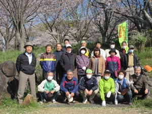 好例になっている、集合記念写真です。最高の満開の桜の基で撮れました