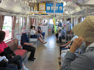 車内の様子。みんなマスクしています。このスタイルいつまで続くのだろう