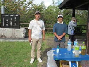 門内公園で休憩です。まだ冷えたスポーツドリンクが美味しかった。まだまだ夏ですね。ドリンクの後は歓談が進みます