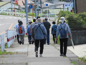 門内神社を出発し「はずヶ丘団地」を下って国道へ出ました。しばらく下り坂が続きます