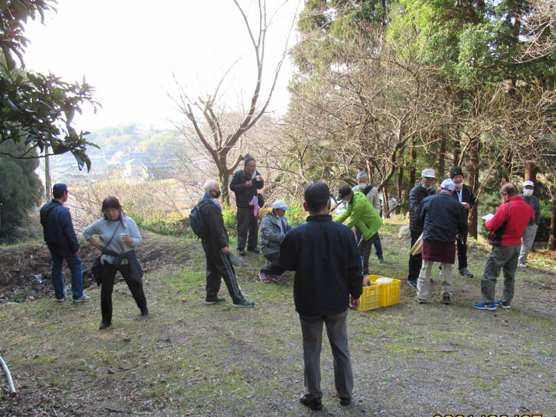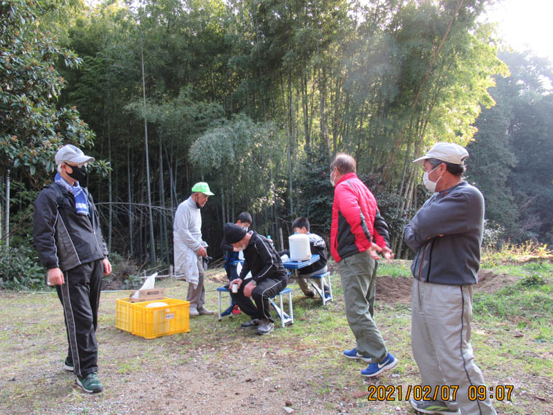 谷組津島社で休憩です。お茶当番は上畑町内会の役員さんです。お疲れ様です