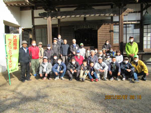 薬師堂で好例の集合写真です。証文岩までの少しきついウォーキングは、これからです |