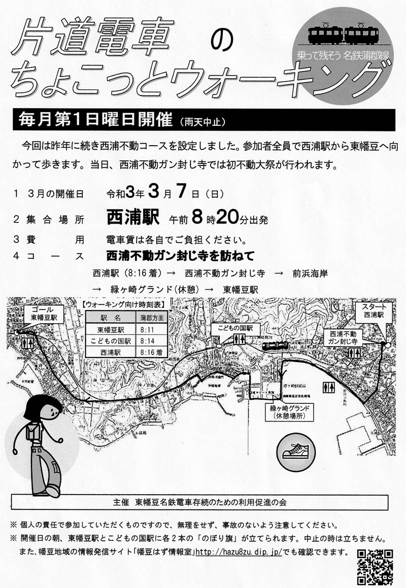 R3.3.7(日)の様子です。「西浦不動ガン封じ寺を訪ねて」と題して、西浦駅まで2区間を電車で行き出発しました。毎年3月第1日曜は西浦初不動です。今年も暖冬で、曇り空でしたが、4月のような気候です。ウォーキングには最適な気温です。参加者25人、みんなお不動さんでは、家内安全・商売繁盛・身体安全等々+ガン封じをお願いしました。 いい汗をかいた半日でした。