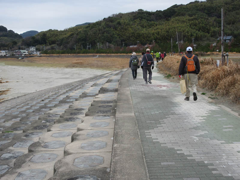 西浦海岸に出て堤防道路を西に向かいます。刺すような寒い風ではないですが、いつも強い風には参ります
