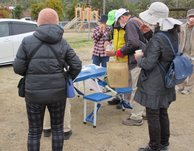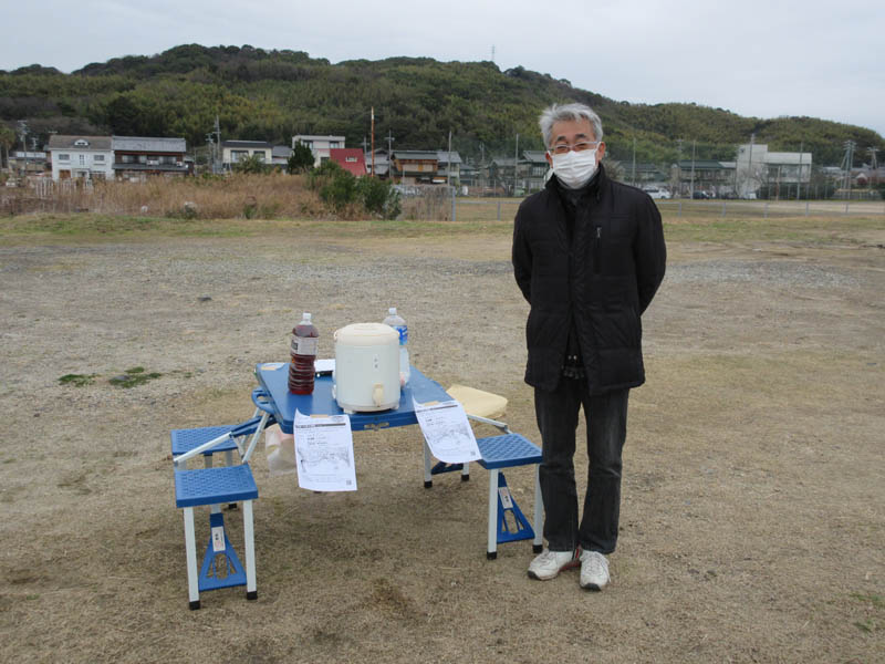 緑ヶ崎グランドの休憩場所に到着です。3月はいえ、まだ暖かいお茶の方がいいです |