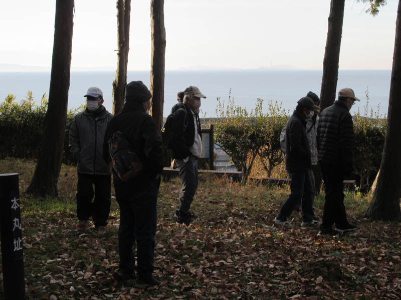 ![]() 寺部城趾で参拝、歴史の勉強し、それから下ります。ここからの三河湾は霞んでいました |