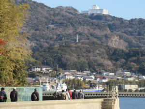 ![]() 東幡豆駅に向かい出発し、寺部の岬を回ったところで東幡豆方面を撮りました。港には大きな貨物船、山には名前を変えた三河湾ヒルズホテルが見えます。東幡豆駅で解散となりました |