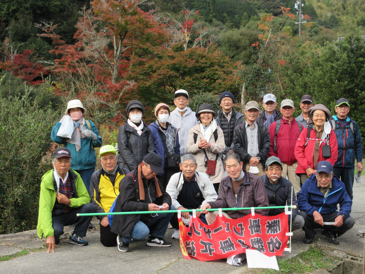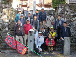 ![]() 龍蔵院をパスした人が加わり記念写真です。ただ、早々出発した人もあり、今回集合写真は2枚になりました |