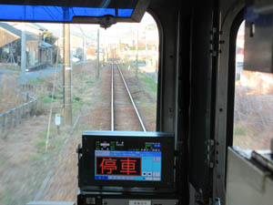 まもなく西幡豆駅です。停車の合図です。もっとも、蒲郡線は各駅停車で通過駅はないので通過の文字は不要かも?
